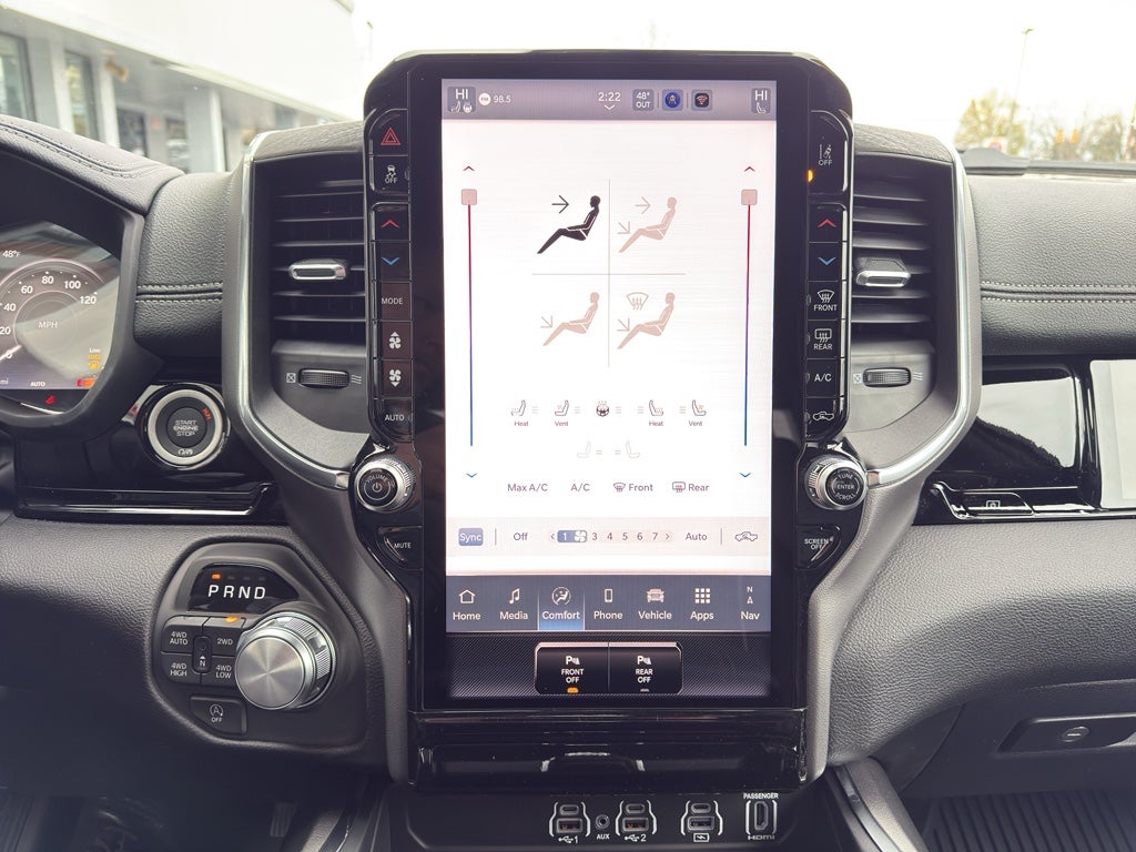 The leather seats in this model are a must for buyers looking for comfort, durability, and style. The state of the art park assist system will guide you easily into any spot. This model is pure luxury with a heated steering wheel. Protect this vehicle from unwanted accidents with a cutting edge backup camera system. Never get into a cold vehicle again with the remote start feature on the vehicle. This vehicle keeps you comfortable with Auto Climate. The installed navigation system will keep you on the right path. This Ram 1500 features a hands-free Bluetooth® phone system. This Ram 1500 offers Apple CarPlay for seamless connectivity. This unit's Forward Collision Warning system alerts the driver to potential front-end collisions, enhancing safety. The vehicle offers Android Auto for seamless smartphone integration. This vehicle has automated speed control that adjusts to maintain a safe following distance, enhancing highway driving convenience. This model emanates grace with its stylish gray exterior.