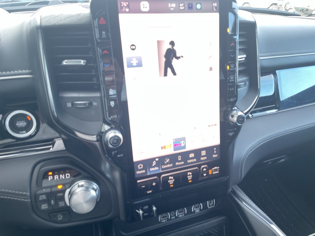 Quick Order Package 22M Limited. Limited Level A Equipment Group: Google Android Auto; SiriusXM Radio Service; USB Host Flip; Surround View Camera System; Integrated Center Stack Radio; LED CHMSL Lamp; Tri-Fold Tonneau Cover; Integrated Voice Command with Bluetooth®; Connectivity - US/Canada; Traffic Sign Recognition; GPS Navigation; 4G LTE Wi-Fi Hot Spot; RamBox Cargo Management System; GPS Antenna Input; Hands-Free Active Driving Assist System; SiriusXM with 360L; Global Telematics Box Module; Head Up Display; Connected Travel and Traffic Services; Evasive Steer Assist; Drowsy Driver Detection; Exterior 115V AC Outlet; Intersection Collision Assist System; Apple CarPlay; Disassociated Touchscreen Display; HD Radio; Smartphone as a Key Capable; 14.4" Touchscreen Display; Uconnect 5 Nav with 14.4" Display; 240 Amp Alternator; Digital Rearview Mirror; 12-Way/1-way Trailer Connector. Night Edition: 285/45R22XL BSW All Season Tires; Accent Color Premium Power Mirrors; Exterior Mirrors with Supplemental Signals; Black Headlamp Bezels; Sport Performance Hood; 22" X 9" Premium Black Aluminum Wheels; Exterior Mirrors Courtesy Lamps; Pirelli Brand Tires; Auto Power-Folding Mirrors; Exterior Mirrors with Heating Element; Auto Dim Exterior Driver Mirror; Black Exterior Truck Badging; Black Day Light Opening Moldings; Accent Color Door Handles; Accent Color Tailgate Handle; Exterior Mirrors with Memory; Dual Exhaust with Black Tips; Body Color Front Bumper; Convex Wide-Angle Exterior Mirror Insert; Black Grille Surround Texture 7 Black; Body Color Rear Bumper with Step Pads; Black Tail Lamp Bezels; RAM Grille Badge - Black; Black Painted Exterior Mirrors Caps. Bed Utility Group: Truck Bed Cargo Divider; MOPAR 4 Adjustable Cargo Tie-Down Hooks; Exterior 115V AC Outlet; MOPAR Deployable Bed Step Center Mount. Dual-Pane Panoramic Sunroof. Multi-Function Tailgate. Tri-Fold Tonneau Cover. Trailer Brake Control. Diamond Black Crystal PC. **Equipment listed is based on original vehicle build and subject to change. Please confirm the accuracy of the included equipment by calling the dealer prior to purchase.**
